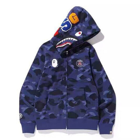 bape multicolor camouflage shark hoodie